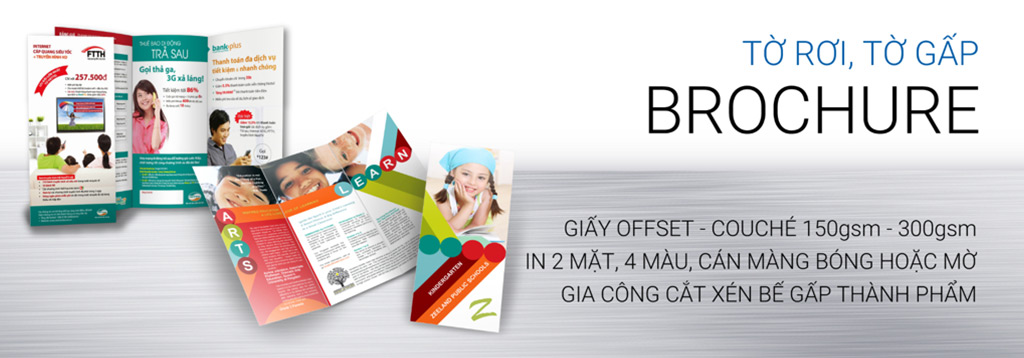 Tờ rơi thường in trên giấy couche mặt lì bóng hoặc giấy offset mặt xốp với định lượng từ 100gsm đến 300gsm (250gsm đối với giấy offset)